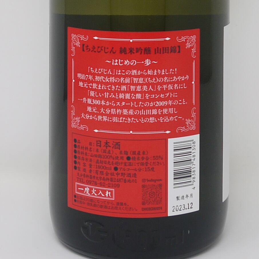 ちえびじん 純米吟醸 山田錦【1800ml】/ 大分 中野酒造