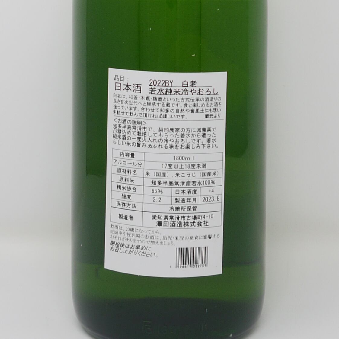 白老 若水 純米 ひやおろし【1800ml 】/ 愛知 澤田酒造株式会社