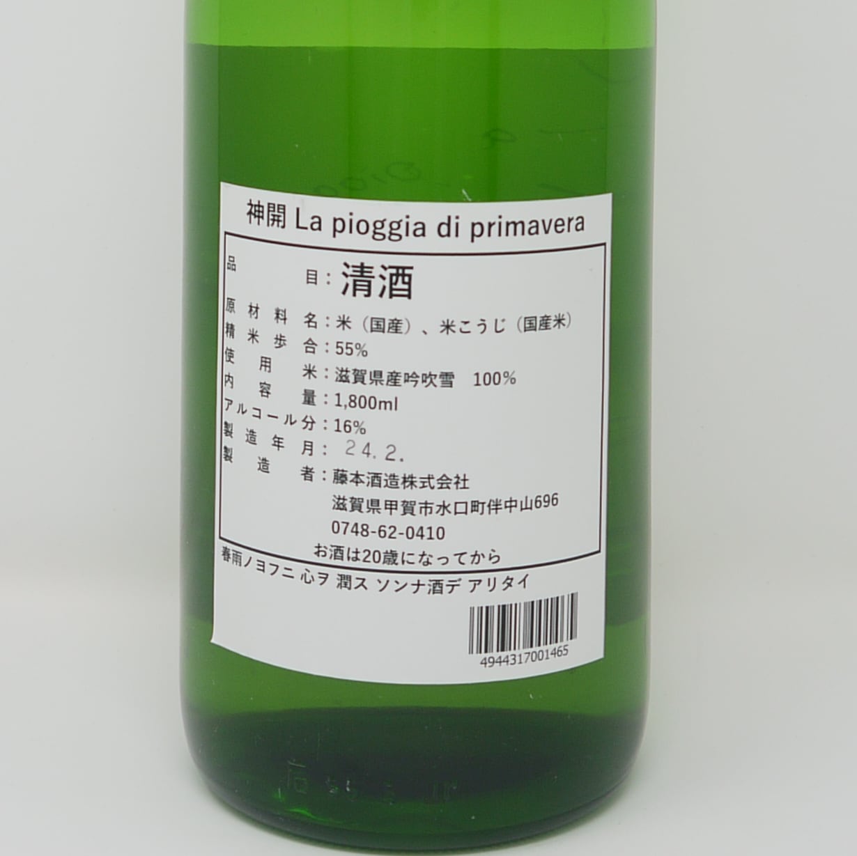 神開 純米吟醸 La pioggia di primavera 【1800ml】/ 滋賀 藤本酒造